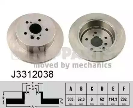 Товар J3312038 Тормозной диск HERTH+BUSS JAKOPARTS с оригинальным номером произвоителя J3312038 для автомобиля марки HERTH+BUSS JAKOPARTS