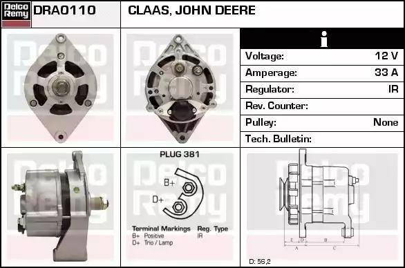 Товар DRA0110 Генератор REMY с оригинальным номером произвоителя DRA0110 для автомобиля марки REMY