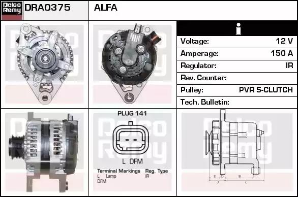 Товар DRA0375 Генератор REMY с оригинальным номером произвоителя DRA0375 для автомобиля марки REMY
