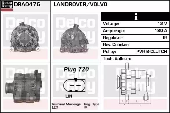 Товар DRA0476 Генератор REMY с оригинальным номером произвоителя DRA0476 для автомобиля марки REMY