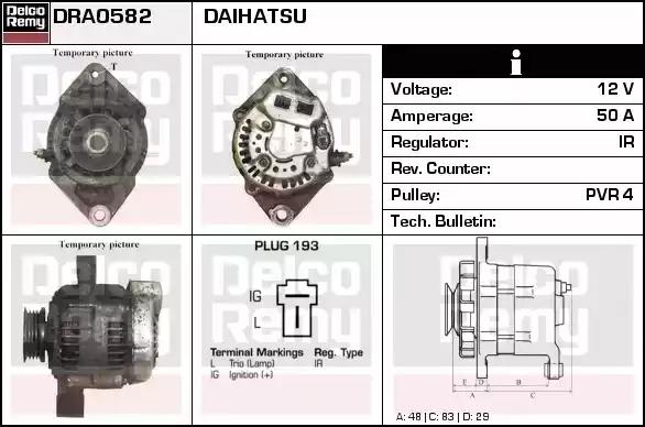 Товар DRA0582 Генератор REMY с оригинальным номером произвоителя DRA0582 для автомобиля марки REMY