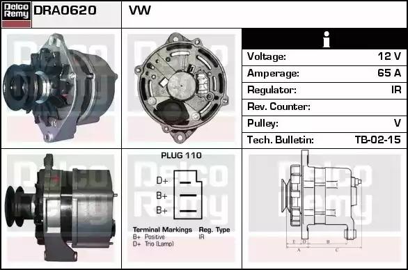 Товар DRA0620 Генератор REMY с оригинальным номером произвоителя DRA0620 для автомобиля марки REMY