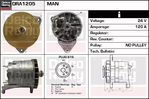 Товар DRA1205 Генератор REMY с оригинальным номером произвоителя DRA1205 для автомобиля марки REMY