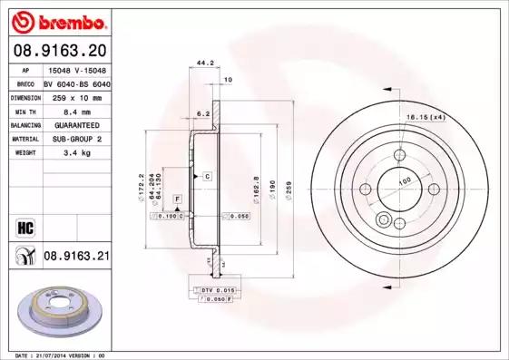 Товар 15048 Тормозной диск A.B.S. с оригинальным номером произвоителя 15048 для автомобиля марки A.B.S.