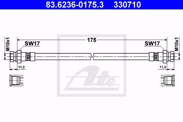 Товар 83.6236-0175.3 Шлангопровод ATE с оригинальным номером произвоителя 83.6236-0175.3 для автомобиля марки ATE