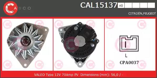Товар CAL15137AS Генератор CASCO с оригинальным номером произвоителя CAL15137AS для автомобиля марки CASCO