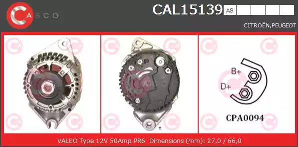 Товар CAL15139RS Генератор CASCO с оригинальным номером произвоителя CAL15139RS для автомобиля марки CASCO