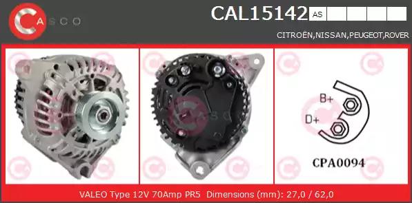 Товар CAL15142AS Генератор CASCO с оригинальным номером произвоителя CAL15142AS для автомобиля марки CASCO