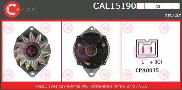 Товар CAL15190RS Генератор CASCO с оригинальным номером произвоителя CAL15190RS для автомобиля марки CASCO