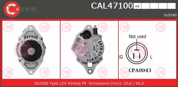 Товар CAL47100AS Генератор CASCO с оригинальным номером произвоителя CAL47100AS для автомобиля марки CASCO