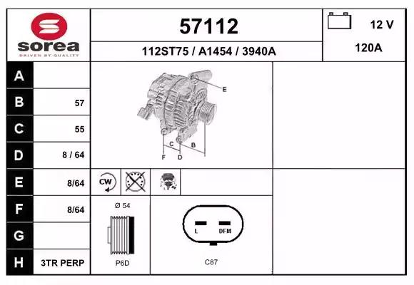 Товар 57112 Генератор EAI с оригинальным номером произвоителя 57112 для автомобиля марки EAI