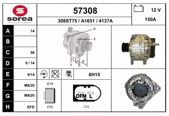 Товар 57308 Генератор EAI с оригинальным номером произвоителя 57308 для автомобиля марки EAI