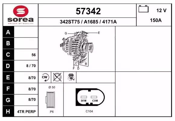 Товар 57342 Генератор EAI с оригинальным номером произвоителя 57342 для автомобиля марки EAI