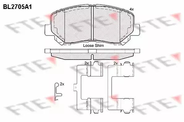 Товар BL2705A1 Комплект тормозных колодок FTE с оригинальным номером произвоителя BL2705A1 для автомобиля марки FTE