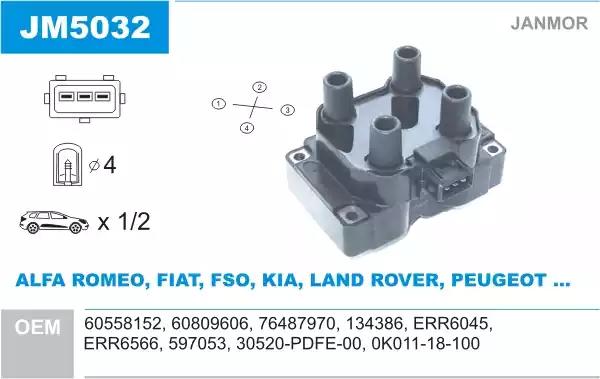 Товар JM5032 Катушка зажигания JANMOR с оригинальным номером произвоителя JM5032 для автомобиля марки JANMOR