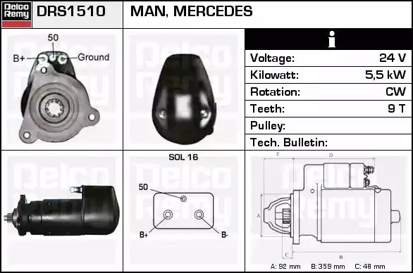 Товар DRS1510 Стартер REMY с оригинальным номером произвоителя DRS1510 для автомобиля марки REMY