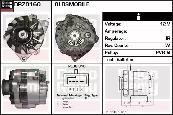 Товар DRZ0160 Генератор REMY с оригинальным номером произвоителя DRZ0160 для автомобиля марки REMY