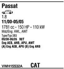 Товар VWH15532A Глушитель WALKER с оригинальным номером произвоителя VWH15532A для автомобиля марки WALKER