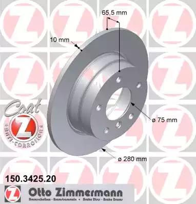 Товар 150.3425.20 Тормозной диск ZIMMERMANN с оригинальным номером произвоителя 150.3425.20 для автомобиля марки ZIMMERMANN
