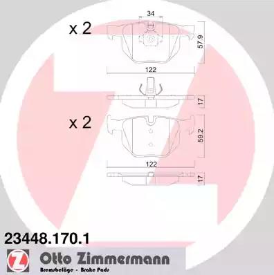 Товар 23448.170.1 Комплект тормозных колодок ZIMMERMANN с оригинальным номером произвоителя 23448.170.1 для автомобиля марки ZIMMERMANN