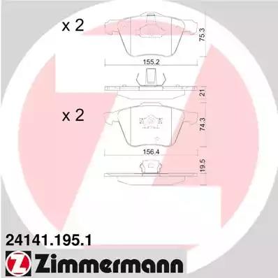 Товар 24141.195.1 Комплект тормозных колодок ZIMMERMANN с оригинальным номером произвоителя 24141.195.1 для автомобиля марки ZIMMERMANN